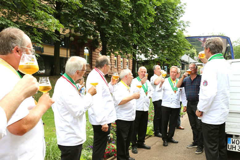 Hier besonders hervorzuheben muss man GMdC Wilfried Neudecker „Soßen Willi“, der ebenso wie LK GMdC Dr. Herbert Geipert, ganze Gänge vorbereitete. Wer glaubt, dass das schon alles ist, wird eines Besseren belehrt: Bernd ruft zum Eintreten in die Festräume, wieder sitzen Kapitel und Großkapitel in bunter Reihe mit Sponsoren und Kochbrüdern. Und hier werden für über 100 Personen 5 Gänge auf hohem Niveau, dazu Spitzenweine – darunter „Große Gewächse“ – organisiert von Chuchileiter Bruder Hans und gestiftet von regionalen Winzern perfekt serviert. Zusammen mit dem Schirmherren, Oberbürgermeister Michael Kissel, erlebten Brüder und Gäste neben dem fulminanten Menü ein buntes Programm.