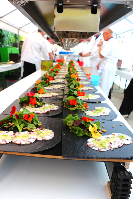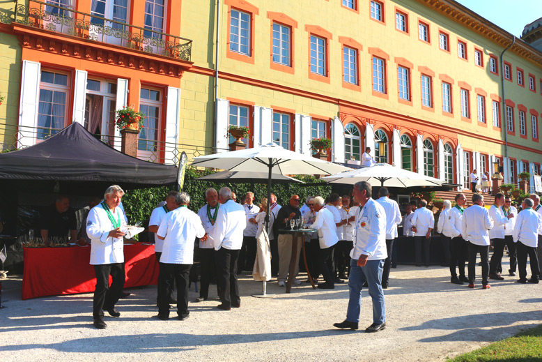 Chuchichef Hans heißt unsere Brüder, Oberbürgermeister Michael Kissel, Gäste und Sponsoren im Schloss Herrnsheim nochmals willkommen. Die Kochbrüder der Chuchinen bereiten bereits unser Festmahl zu und richten hier später an – fast unbemerkt, da im eigenen Zelt und v. a. geräuscharm, bestens vorbereitet durch Probekochen, perfekte Aufgabenverteilung und Zusammenspiel – so gelingt Kochen auf hohem Niveau für eine so zahlreiche Gesellschaft und so entsteht, trotz allem angenehmer Stress, wahrlich Brüderlichkeit – Dank an alle beteiligte Kochbrüder.